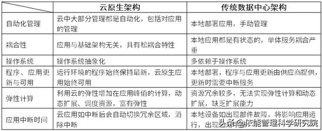 云原生架构相较于传统的数据中心架构,两者的区别可概括为以下几点: