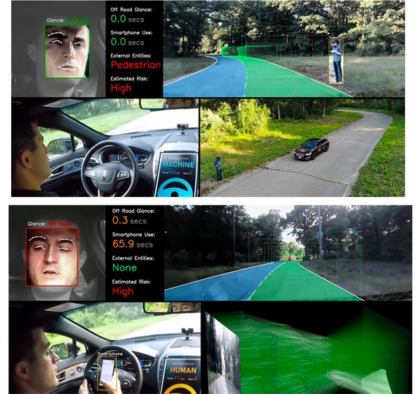 而正如表 I 所述,「以人为中心」的自动驾驶汽车着眼点主要在司机身上。负责控制车辆的依然是人,但前提是要对人的状态、驾驶方式及之前的人机合作经验做充分的考量,同时把车辆的转向、加减速等交由人工智能系统负责。以特斯拉的 Autopilot 为例,之前 MIT 的研究显示,测试中有超过 30% 的行程都是由这套 L2 级驾驶辅助系统控制完成的。而如果人机共驾应用成功的话,应该能实现超过 50% 的机器控制率。在这次实验中,MIT 表示无人车系统在接管过程中呈现出了不同程度的能力,而人类驾驶员始终在密切关注着机器的动态,根据感知系统获得的信息及时预测可能发生的危险。