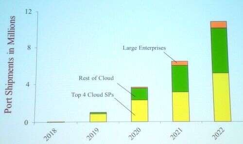Bechtolsheim的水晶球除了预测2021年112G serds的系统支持以外其他预测都有些模糊。他看到超过112G serdes以及将光学模块和交换升级到1.6Tbit/s这一步存在一些困难。