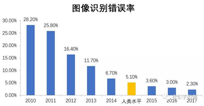 ImageNet的图像识别大战为这类新物种的到来提供了可以量化的指标。机器识别图像的错误率已经低于人类水平,且不断刷出新低。以至于,CVPR在2017宣布,这是ImageNet竞赛正式组织的最后一次,因为,在超越人类后,同样竞赛的意义已经不大了。