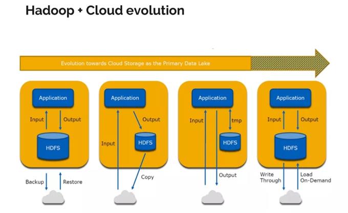 对于 Hadoop 存储面向云的演化,主要是看 HDFS 如何跟云上的对象存储配合。