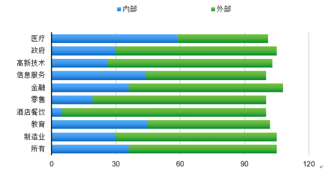 2、政府行业表现出平均水平的内部威胁,内部威胁比例快速上升