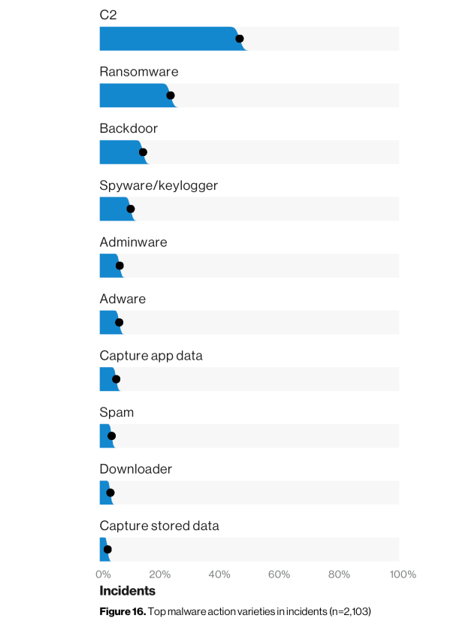 下图以 C2,ransowmare 和 backdoor 为主要恶意软件的统计符合 2018 年度猖獗的间谍活动、挖矿和勒索威胁的总体特征。
