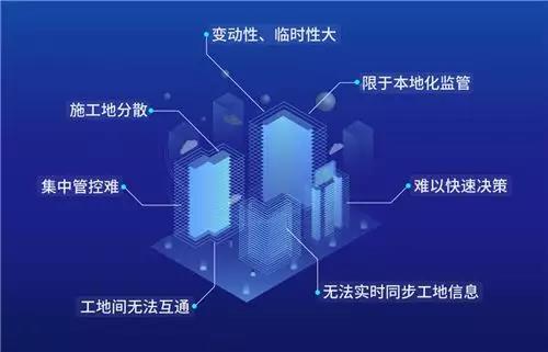 建筑行业的管理痛点:各建筑施工地信号分散,无法集中管理,消耗人力监管资源;各施工地之间,无法实现信息互联互通;建筑施工地址具有临时性、变动大等特性。