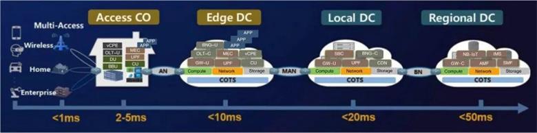 根据运营商给出的大致估算,若业务经由部署在接入点基站端的边缘计算网络完成处理和转发,则时延有望控制在1ms之内;若业务在接入网的边缘计算中心处理网元上完成处理和转发,则时延约在2ms?5ms之间;即使是经过边缘数据中心内的处理,时延也能控制在10ms之内。5G边缘计算带来的这种网络效能的提升,是不单纯依赖于网络现有的基础设施条件的,更多和平台的开放性和可拓展性相关。