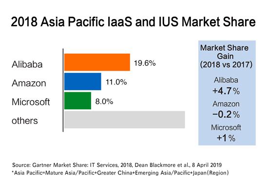 Gartner数据还显示,阿里云2018年收入同比增速达92.6%,在云计算五巨头中排名第一,实现全球市场份额占比7.7%,比2017年4.6%的市场份额增加了3.1个百分点,在全球市场"坐三望二"。