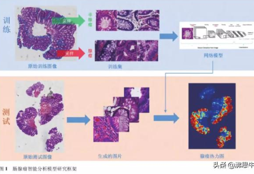 其次,海量标注的数据构建和训练模型,包括:图像特征提取、检测分析等步骤(如图1)。一旦病理AI模型成功构建,病理医生就可以应用AI病理辅诊系统进行病理AI诊断,流程包括:标准化切片的制作、切片数字化扫描、AI算法读片、AI提示阳性切片人工复核等环节(如图1)。