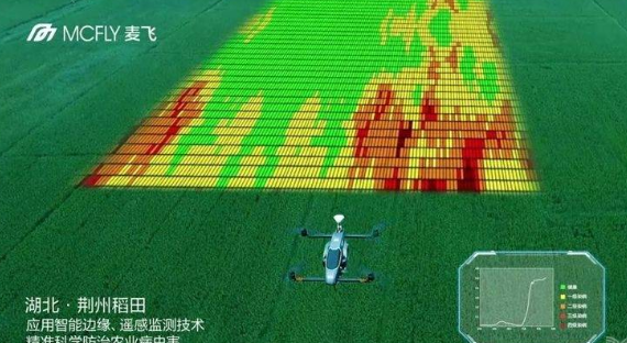 数据显示,麦飞科技的遥感技术可以检测出数十种常见病虫害种类所引起的病虫害程度的分布,准确率达90%以上。由于麦飞科技对农田病虫害有了实时精准探测,农药施洒量平均减少50%以上。