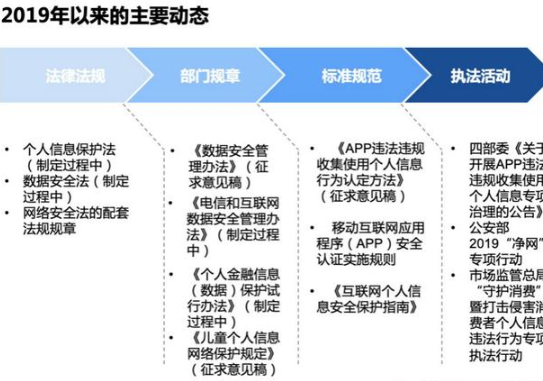 与此同时,为了进一步肃清行业,网信办还于今年明确了数据安全的具体实施细则。例如,起草了《数据安全管理办法(征求意见稿)》,对个人数据的收集、处理使用和安全监督管理进行了详细规定。另外还公布了《个人信息安全规范(征求意见稿)》,对个人信息的委托处理、共享、转让、公开披露和个人信息安全事件处置进行了说明。