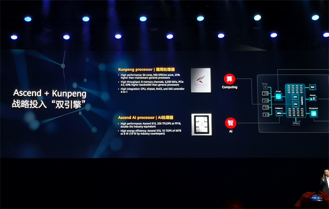 具体来看,双引擎指的是华为的鲲鹏与昇腾芯片族;两翼指华为的智能计算业务、智能数据与存储业务;一云代表华为云;开放的生态则表示华为要通过硬件开放和软件开源,使能广大合作伙伴,形成开放的产业生态。