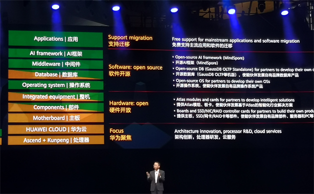 两大重量级软件开源之外,华为还在大会上宣布硬件开放,即基于“鲲鹏”与“昇腾”等自研芯片,对外提供主板/SSD/网卡/RAID卡/Atlas模组和板卡,优先支持合作伙伴发展服务器和PC等计算产品。条件成熟时,华为甚至可以停止TaiShan服务器的销售业务。