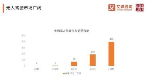 艾媒咨询大数据显示,我国预计在2020年左右实现无人驾驶,销量可达6万辆,随后会出现大幅度增长。预计到2030年,中国无人驾驶汽车销量将达190万辆;到2035年,估计销量可达400万辆,将在全球无人驾驶市场占据较大份额。
