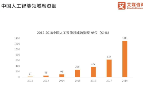 艾媒咨询最近发布的《2019上半年中国人工智能产业研究报告》数据显示,2018年中国人工智能领域共融资1311亿元,增长率超过100%,投资者看好人工智能行业的发展前景,资本将助力行业更好地发展。