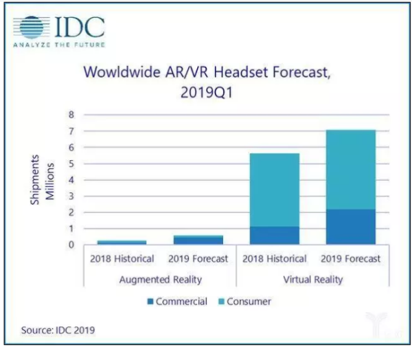 5G时代来了,关于5G将助推VR产业的论点也多了起来。VR产业有了升温的迹象。据IDC最新报告显示,2019年第一季度AR/VR头显全球出货量达到130万台,同比增长27.2%,这是AR/VR头显销量经历了上一年度下滑之后出现的首次增长。