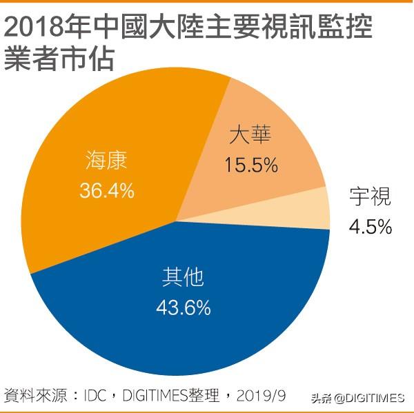 再就主要安防系统业者而言,2018年中国前三大供应业者海康威视、大华、宇视分别占有36.4%、15.5%、4.5%市场,合计共占56.4%。这也反映,国内安防设备市场在业者上的相对集中性。