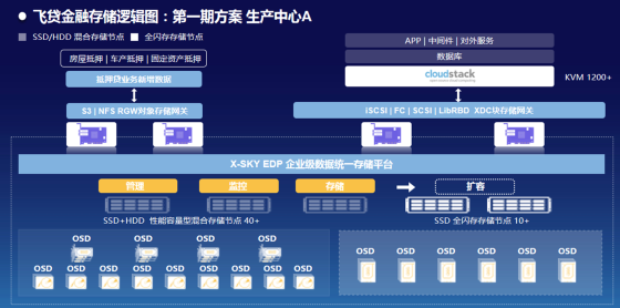 早在2016年,飞贷就已选用 CloudStack + XSKY SDS来搭建整个私有云IaaS 平台,用于支撑的业务类型包括:人脸识别与成像、海量数据影像存储、核算与清算体系、手机APP后端服务等。