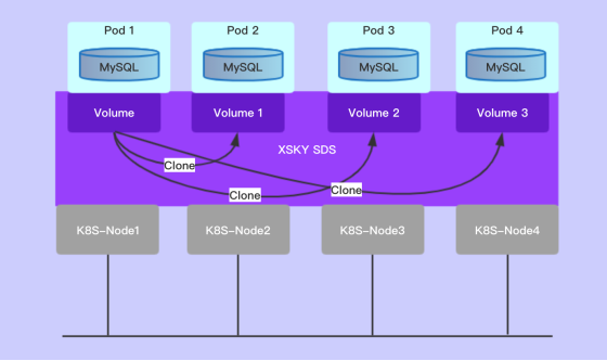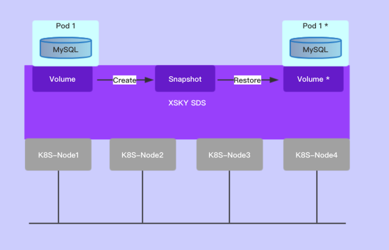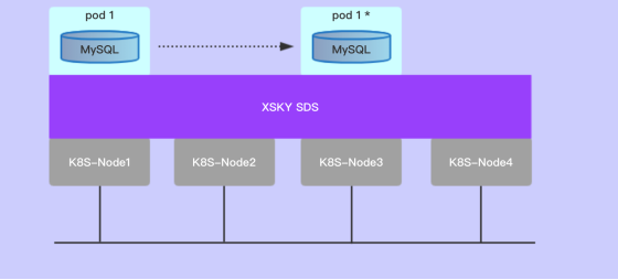 XSKY SDS 支持CSI 持久卷,当Pod 漂移到其他节点启动时,数据库可继续正常运行,保证了业务系统的正常使用。