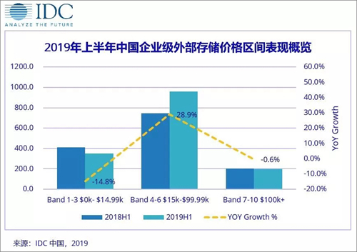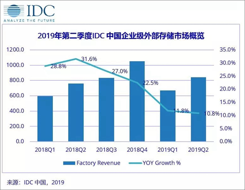 IDC中国发布《中国企业级外部存储市场季度跟踪报告,2019年第二季度》季度报告显示,中国企业级外部存储市场经历了2018年的快速增长后,增长态势放缓。在2019年上半年,中国企业级外部存储市场与去年同期相比增长11.3%,达到15.1亿美元;市场出货量达到66519台,总体容量达到6024. 0PB。2019年上半年,中国企业级外部存储市场与去年同期相比增长11.3%,达到15.1亿美元;市场出货量达到66519台,总体容量达到6024. 0PB。从全球视角来看,外置存储的增长也在放缓,同比增长2.2%。IDC 认为,这主要是受到基于服务器的内置存储增长乏力的影响。