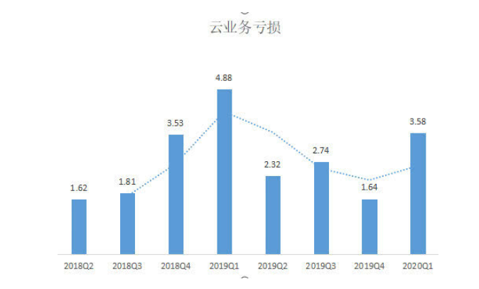 另一方面,阿里云至今还未能实现收支平衡,从下图可以看出,阿里云一直处在亏损状态中。对于多数云服务厂商,运营成本的负担非常重,它是硬件成本+电力成本+网络成本+闲置成本+人力成本的总和,每个环节都是大额的资金支出。