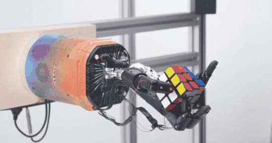 这就是为何Dactyl会被模仿人手设计成拥有24个关节机械手的原因,它与我们在工厂里看到的机械爪或机械钳完全不同。对于支持Dactyl学习如何以人类的方式利用所有这些关节的软件,OpenAI尝试在现实世界中破解魔方之前,已经在模拟环境中对其进行了数千年的训练。