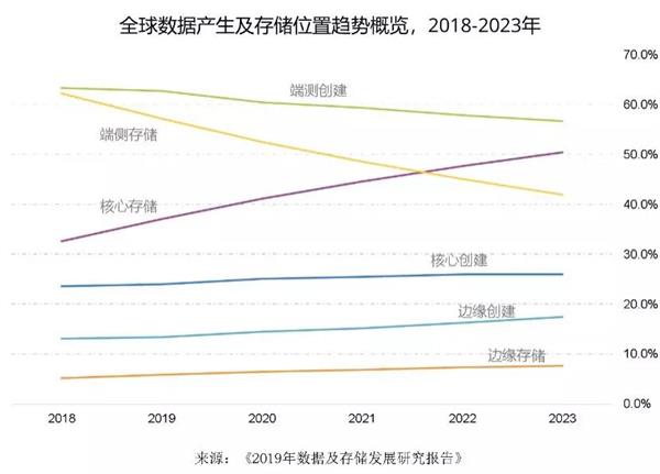 通过对金融、交通、电信、能源、医疗等行业的研究,报告指出新数据时代下表现出的新数据特征:数据海量增长,到2025年全球新创建的数据将达到175ZB;企业对实时数据需求增加,到2023年实时数据占全球数据圈24.5%的份额;未来全球将有超过70%的企业选择多云部署模式,到2023年42.4%的企业将采用边缘+核心的组合架构,核心数据中心的数据存储容量占比将超过50%。