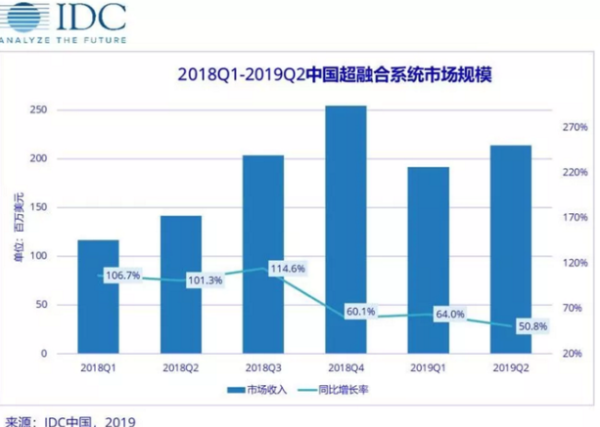 经过2018年的快速增长,中国超融合系统市场在2019年上半年保持健康增长态势,较去年同期增长56.7%。