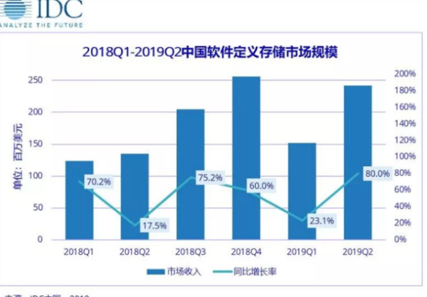 IDC于近日发布了《中国软件定义存储(SDS)及超融合存储(HCI)系统市场季度跟踪报告,2019年第二季度》。报告显示,2019年上半年,超融合市场较去年同期实现了56.7%的增长;软件定义存储市场达到了52.8%的同比增长率。从硬件市场角度来看,超融合系统硬件在中国整体存储市场的市场占有量为17.6%,市场总额达到4.06亿美元;软件定义存储硬件占整体存储市场的17.9%,实现3.94亿美元的市场总额。