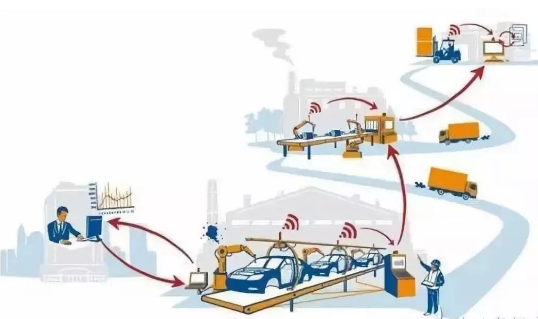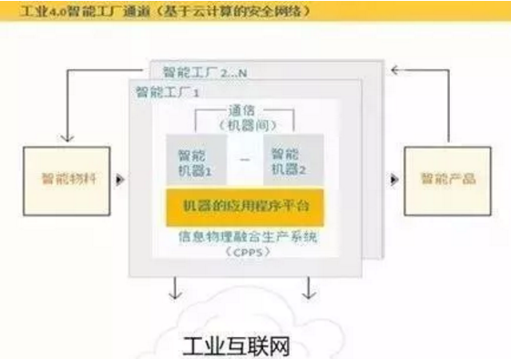 生产智能化和工业互联网实际上就是“工业4.0”时代的重要标志之一——在智能工厂,利用智能设备,将智能物料生产成智能产品,整个过程贯穿以网络协同(图14)。