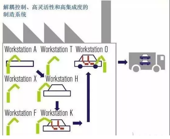 “工业4.0”描绘的智能工厂中,固定的生产线概念消失了,采取了可以动态、有机地重新构成的模块化生产方式。