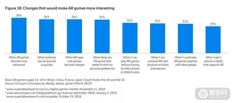 根据统计,有40%的人认为:更好玩、更身临其境、成本更低的AR眼镜、更长的设备续航,这些都将成为决定AR游戏体验是否有趣的关键。