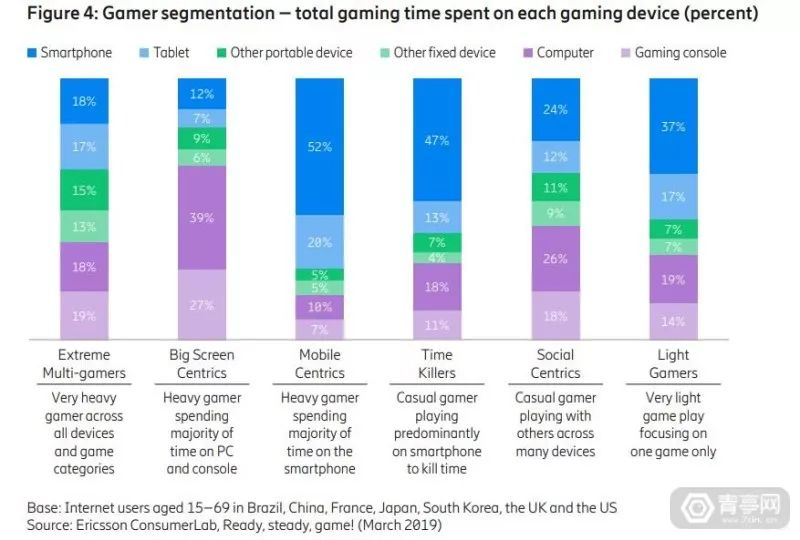近期爱立信通过分析游戏玩家的硬件设备、使用习惯、游戏态度等方面,将游戏玩家分类了几个类别。