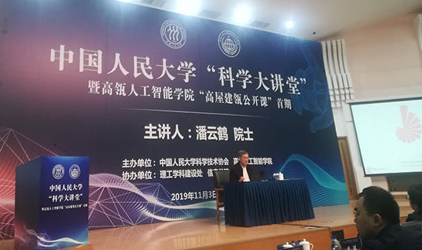 11月3日上午,中国工程院院士、国家新一代人工智能战略咨询委员会组长、中国人工智能产业发展联盟理事长、中国人民大学高瓴人工智能学院学术委员会主任潘云鹤,在中国人民大学“科学大讲堂”暨高瓴人工智能学院“高屋建瓴”公开课首期,作题为《人工智能2.0与数字经济》的报告。 澎湃新闻记者 廖瑾 图