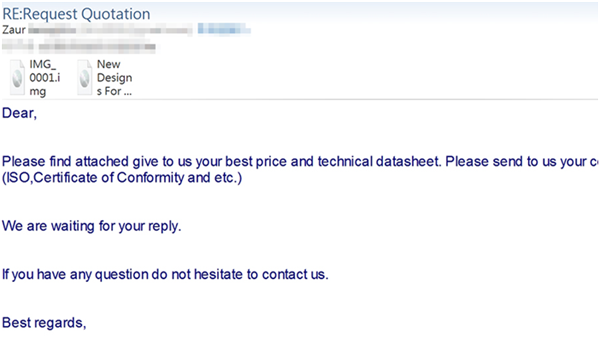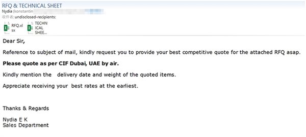 CVE20144114漏洞利用频率,一季比一季高,9月达到了高峰,较于今年一月的频率成长了30倍以上,且并非平均分布,而是集中在某些企业单位才出现大量攻击,被攻击目标企业包括电子、食品、医疗相关产业。其次是CVE20180802漏洞利用,虽然没有明显的突发性成长,每月都有稳定的攻击数量。以第三季度的样本为例,最常见的就是夹带.xlsx的附件,少量为.doc的附件,附件文件名多半带有Swiftt Copy、Scan、RFQ、Request、Remittance、Quotation、Purchase、Invoice、PO、Payment、Order等关键词。