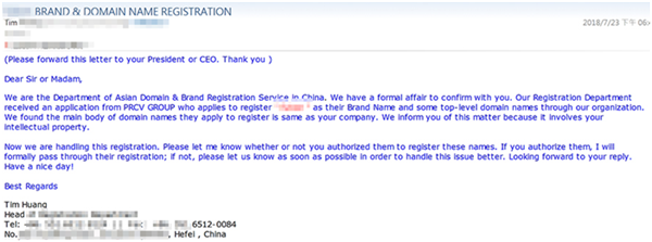 域名诈骗邮件由来已久,过去常见的域名诈骗,多半利用纯社交工程的手段,以域名已过期、将遭占用,诱骗收件者回复后,进一步进行互动与诈骗。这类诈骗邮件提及的域名,有时是受害单位没注册过但非常相似的域名,因此若受害者思虑不周,直接查询邮件中提及的域名,可能信以为真落入攻击者的圈套。
