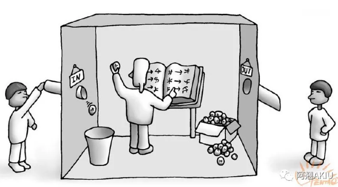 但很快就有人发现:在这种方式下实现的人工智能并非真正的智能,只是对人类智能的模拟。美国哲学家John Searle提出了一个思维实验:中文房间(Chinese Room Argument),它是这样的: