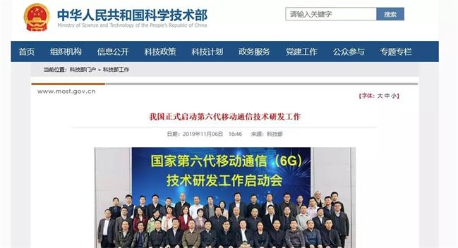 11月6日,中国科技部在官网上发文称,为促进我国移动通信产业发展和科技创新,推动第六代移动通信技术(6G)研发工作,日前,科技部已经会同发展改革委、教育部、工业和信息化部、中科院、自然科学基金委在北京组织召开了6G技术研发工作启动会。