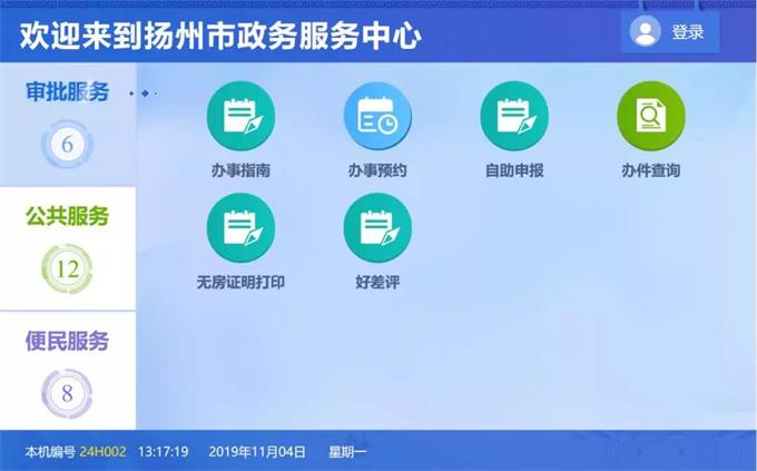 目前,扬州24小时智慧政务大厅自助体验区已进驻公安局、税务局、自然资源与规划局、工信局、人社局等多家单位的自助设备,能实现机动车禁区通行证核发、保安员证核发、居民身份证网上功能开通、交通违法处理和缴款、居住证自助办理、增值税专用发票自助代开、不动产登记信息自助查询等多类政务服务;政务办自主研发的综合自助服务一体机,集成涉及审批服务、便民服务、公共服务三大类26个应用,提供无房证明打印、社保证明打印、公积金提取、办事指南打印、自助申报、办事进度查询、重名查询、身份证自助复印等智能化服务,让政务服务“不打烊”。