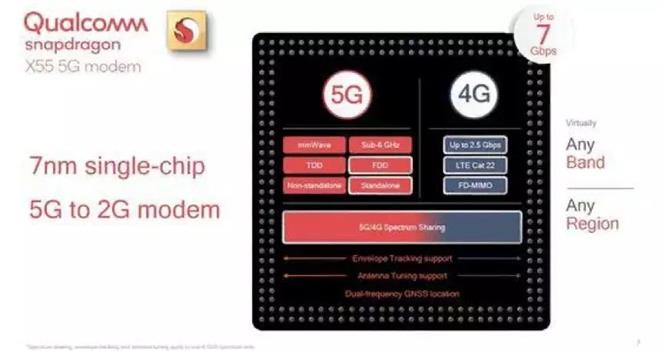 后来,高通又推出外挂5G基带芯片X50的改进版X55。据芯世相公众号在文章《目前5G芯片有哪些品牌?高通、三星、华为、紫光,哪家5G更厉害?》中介绍,X55不仅增加了独立组网(SA),制程也将改为7nm,并且把X50缺失的2/3/4G基带功能加了回去,然而X55在频段支持与软件方面的不到位,导致其消费者在产品与网络服务商的选择上陷入困惑,Verizon为了解决自家的5G支持问题,甚至向三星采购了采用了X50的特规Note 10+ 5G,可见高通的方案问题仍然相当大。