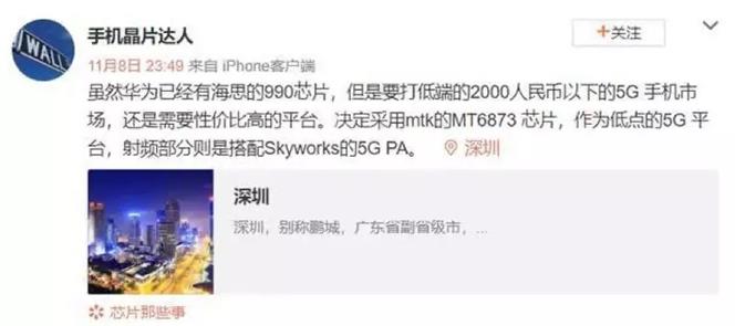 不同于前三家的动作频频,联发科在5G手机芯片领域可谓一直悄然沉寂,直到最近,联发科官微才正式宣布将于11月26日在深圳召开“MediaTeK 5G方案”发布会,并发布旗下首款5G手机芯片——MT6855。