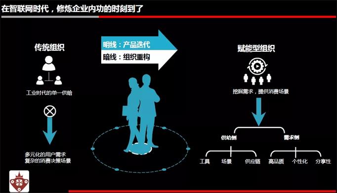 这种思维就是我们今天想呈现的智联网思维,它是包括对外部市场的响应,包括对内部的能力形成的一个完整的闭环,然后来推动商业里的飞轮能够飞速的发展。