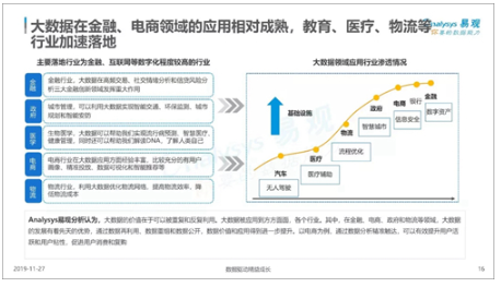 ■大数据在金融、电商领域的应用相对成熟,教育、医疗、物流等行业加速落地。