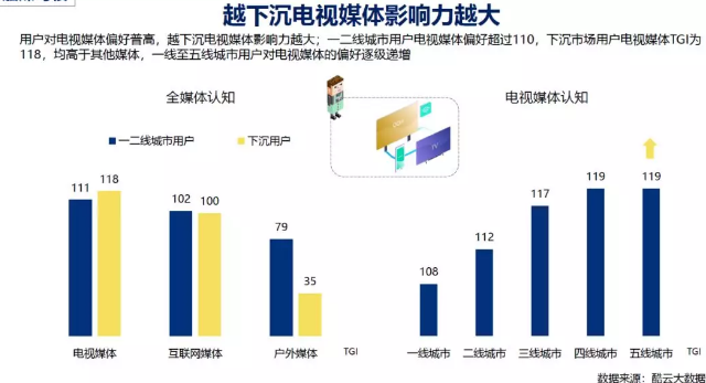 两者结合,也就意味着下沉市场的电视媒体,有着巨大的商业价值,这也为全媒体营销决策在下沉市场的具体操作提供了重要的参考方向。