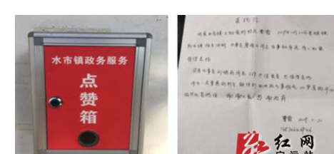 日前,为提高政务服务水平,宁远县水市镇纪委在便民服务中心门口设立了两个特别的箱子:一个红色的“点赞箱”,一个白色的“举报箱”。