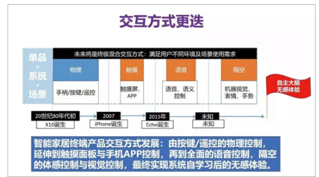 主动智能阶段则是指智能系统根据用户行为偏好、用户画像、环境等各类信息,自我学习、主动提供适用于用户的服务。例如清晨伴随着光线的变化,窗帘自动缓缓开启,音箱传来悦耳的起床音乐,空调调整到适应白天的温度等。而在科幻小说、电影所描绘的未来阶段,AI则会变成一位不折不扣的“管家”。TA不再被动接受命令,而是根据用户私人喜好、定制化需求来主动提供服务。主人想看电视时,“管家”会自动降低环境光线和设备噪音;主人在家开完派对,“管家”指挥机器人自动打扫清洁……在这一阶段,AI作用被进一步放大,并完全和IoT设备群整合在一起。