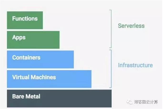 上图来自谷歌云平台官网,是对云计算的一个很好的分层概括,其中 serverless 就是构建在虚拟机和容器之上的一层,与应用本身的关系更加密切。