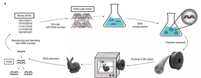 最近,一个欧洲科学家团队宣布已经成功找到了一种将DNA基本上存储在任何物体中的方法——通过编码说明在兔子本身中创建3D打印塑料兔子的方法,证明了这种能力。