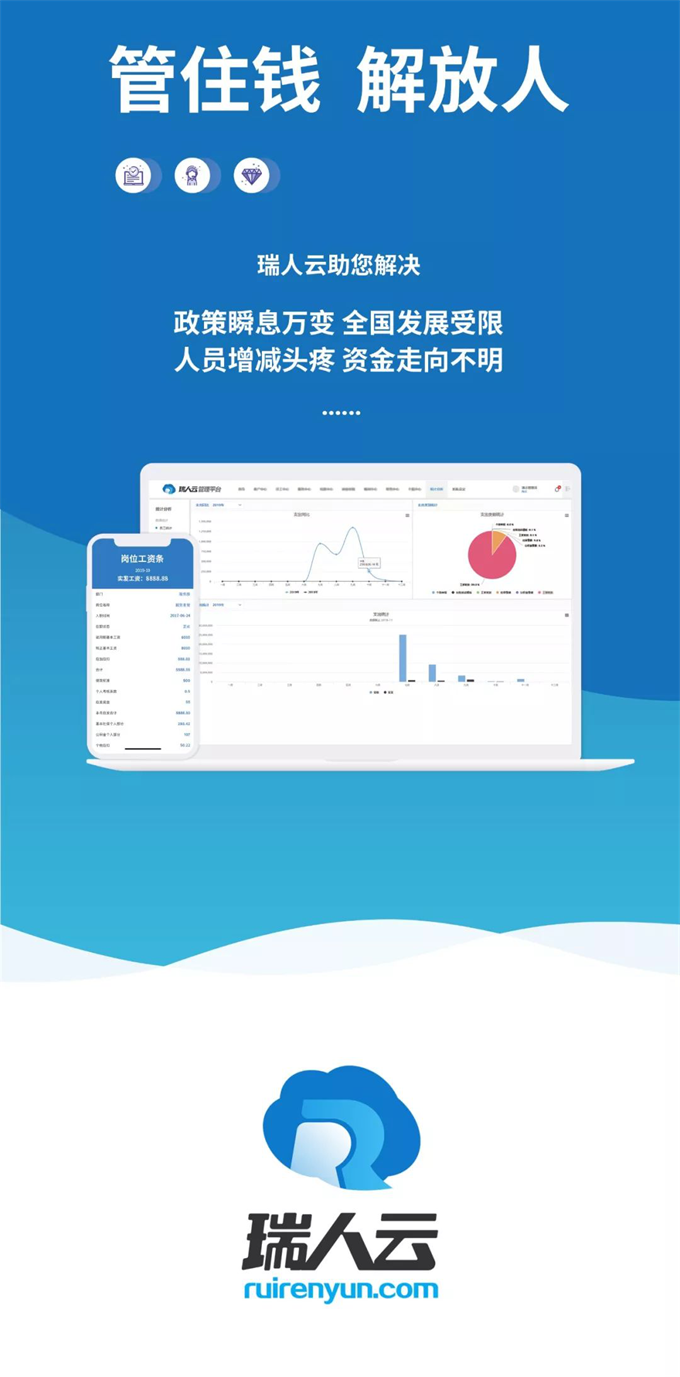 瑞人云——人力资源全流程外包服务SaaS平台,借助于数字化技术,数据化运营的思维,贴近人力资源服务业务需求,打造闭环的人力资源全流程外包服务云平台,让人力资源机构服务流程更清晰,服务数据更精准,服务协作更高效!用数据赋能业务决策,真正做到让数据“说话”。