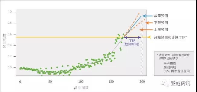 图3a. 利用MVA预测器及其元件的PdM方法,包括故障时间趋势和以置信度或区间表示的预测结果。