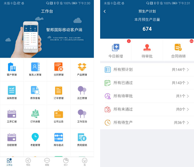 智邦国际工业企业管理系统,移动APP端实时提醒
