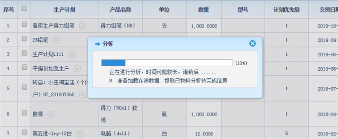 智邦国际工业企业管理系统中,添加合同时,可以自动生成收款计划、开票计划、预生产计划等,在物料分析环节,自动抓取产品生产计划、物料清单、库存余量、安全库存、物料替代、参与仓库等数据,一键完成分析,并可根据不同生产流程,一键生成采购需求、生产排产或生产订单等。